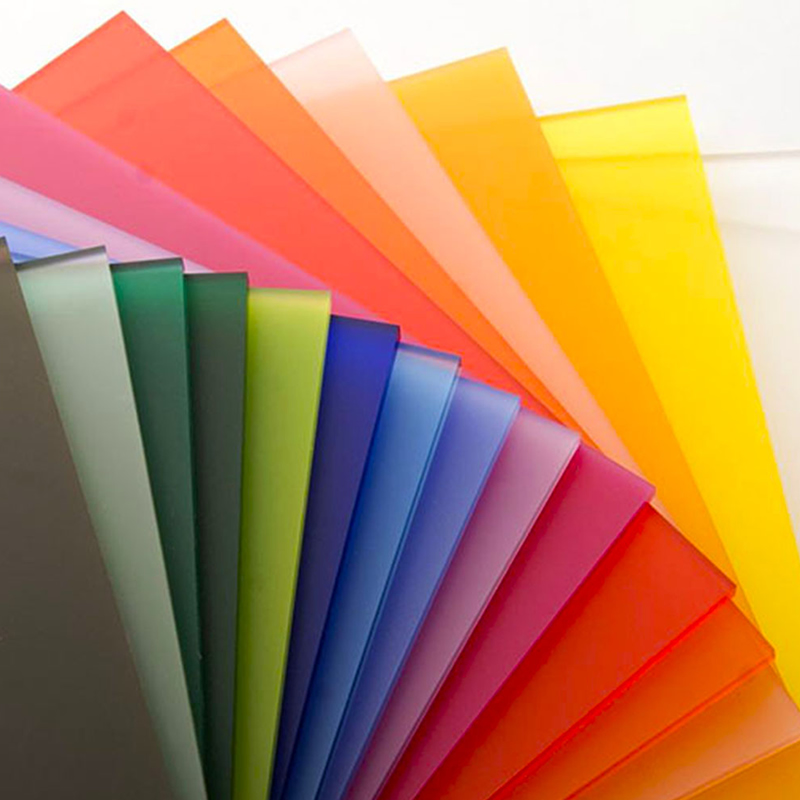 Acrílicos de diferentes calibres, desde 2mm hasta 30mm de espesor, lisos y texturados, transparentes, de colores y opacos.